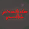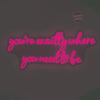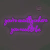 Ajoutez une touche de motivation et de sérénité à votre espace avec l'enseigne néon "You’re Exactly Where You Need to Be". Ce message inspirant rappelle l'importance de vivre l'instant présent et d'apprécier où l'on se trouve dans la vie. Parfaite pour les salons, chambres, bureaux ou tout espace où l'on cherche à cultiver la positivité, cette enseigne crée une ambiance apaisante et encourageante. Fabriquée en tubes néon LED de haute qualité, elle est écoénergétique, durable et facile à installer.